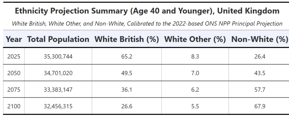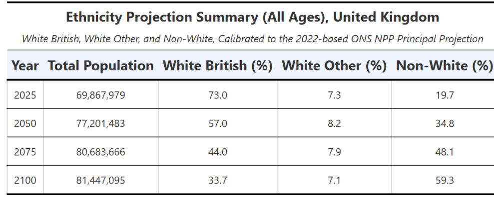 Matt, thank you for highlighting these trends. It can be inferred from your framing you find the native British becoming a minority and the growth if Islam undesirable. Given you are now in Reform and seeking election, I assume Reform are aligned with your view. Could you confirm what you/the party propose is done about the situation? I haven’t yet read the book so you might well include policy remedies in the book, but as far as the party goes I can’t see anything that suggest Reform is seeking to prevent the native British population becoming a minority or the growth of Islam. Indeed, in that recent interview with Steven Edgington, Richard Tice said he wasn’t concerned about the White British becoming a minority. Could you enlighten your subscribers as to the exact position as there appears to be conflicting messages?