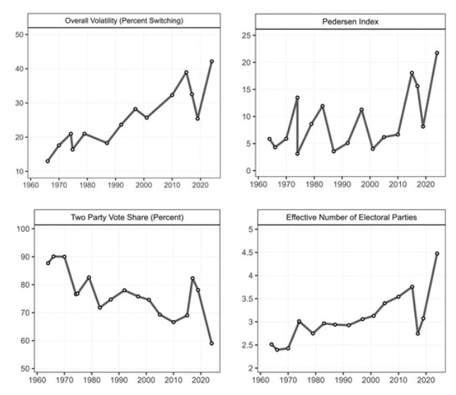 Since the 1960s, you can see how the number of people switching their support from one party to another, has surged to record numbers.