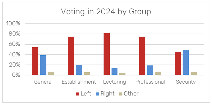 Overall, while at the last general election the British people split 54-39 in favour of left-wing parties, members of The Regime are totally different. They are in a world of their own, splitting an astonishing 75-19 in favour of the Left.