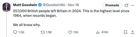 Matt Goodwin’s newsletter goes to 89,900 subscribers from 181 countries. Like our stuff? Then become a paying supporter and help us while gaining access to exclusive weekly posts, the archive, events, comments and know you’re supporting independent writers making a difference. You can join us on YouTube, Insta, TikTok, X and Facebook.