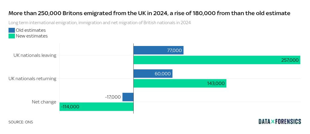 In fact, across the last four years, since 2021, some 992,000 Brits left the country, which is far higher than the previous official estimate of 343,000.