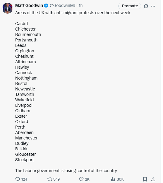 First, there are organised protests against the ‘migrant hotels’ and Britain’s broken borders, with another thirty protests happening over the next week and coming after the victory in Epping, which is clearly galvanising further action.