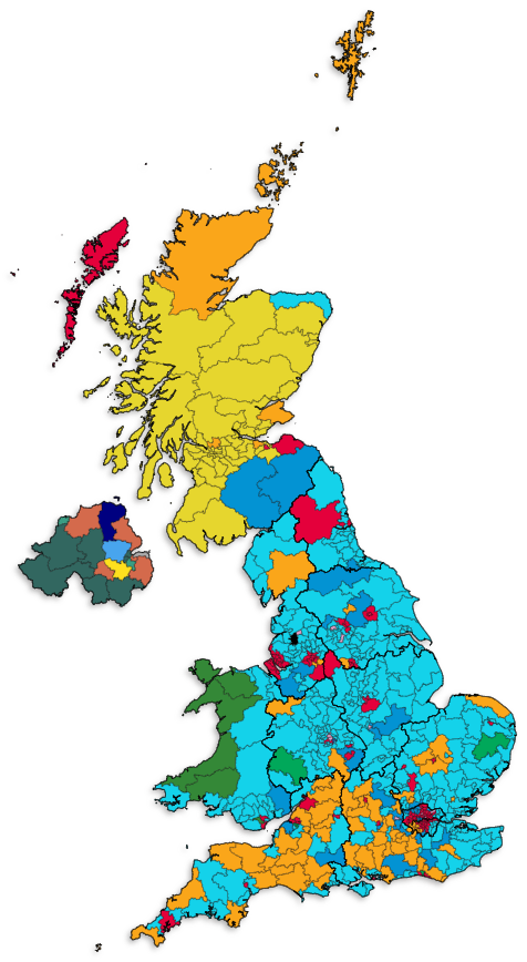 What would the map of British politics look like were these numbers replicated at the next general election in 2028 or 2029?