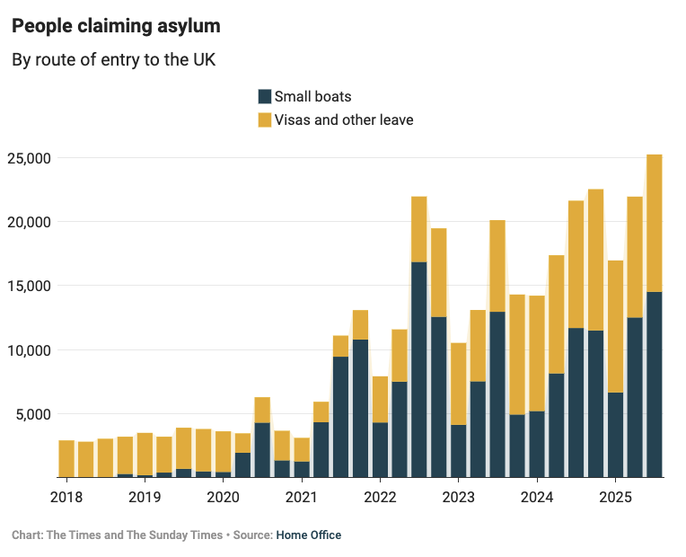 More than half of all asylum-seekers entered Britain illegally, while more than 41,000 claimed asylum after arriving in the UK on another kind of visa, which is insane. Nearly 15,000 international students came to Britain and then claimed asylum.